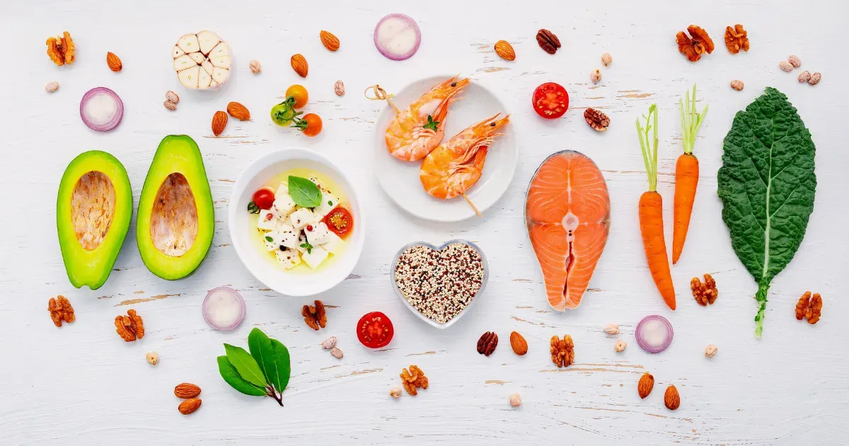 신선한 채소, 과일, 견과류, 올리브 오일, 생선 위주의 식단
