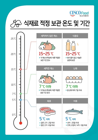 냉장실 3~5℃, 냉동실 -18℃ 유지.