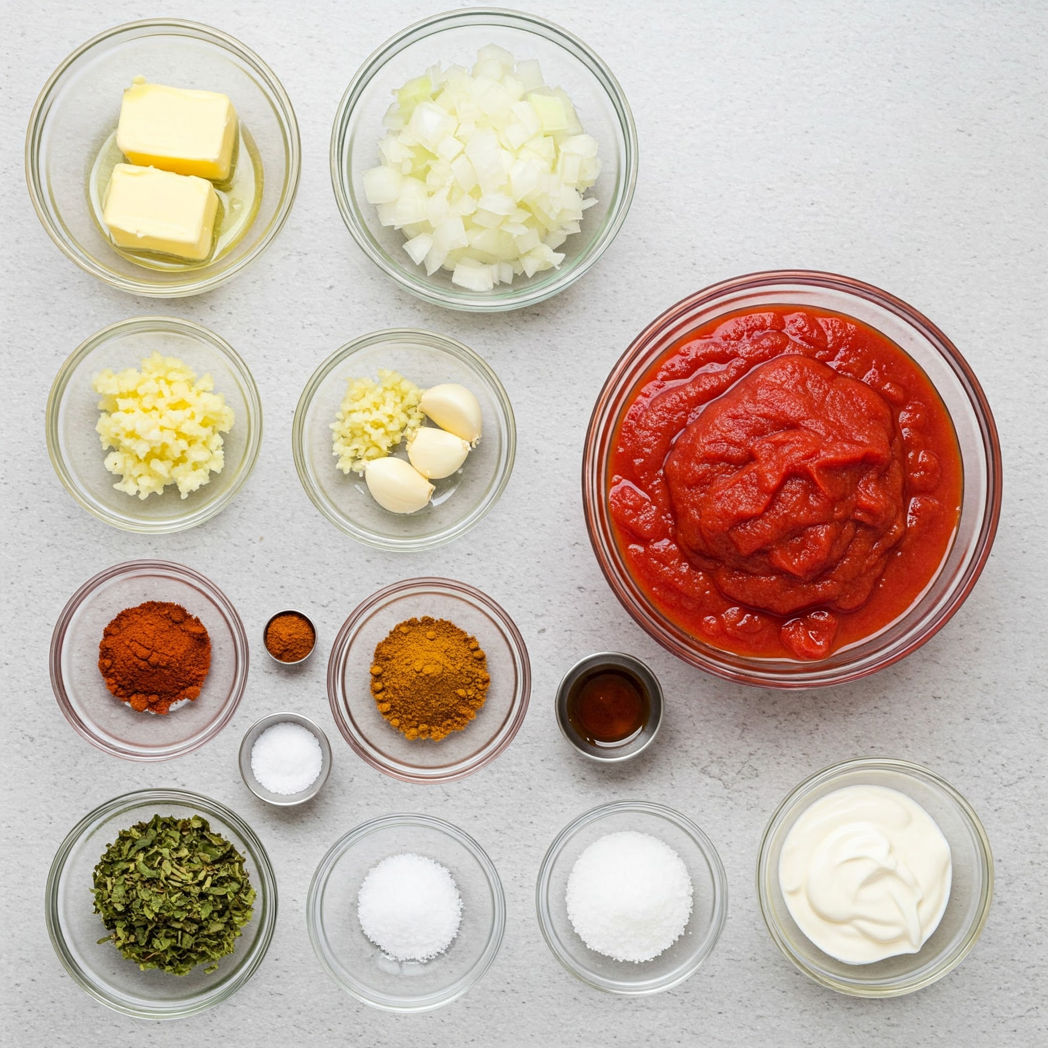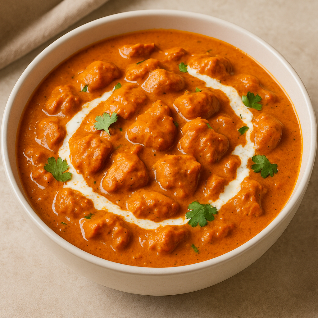 특징: 부드럽고 크리미한 토마토 기반 소스에 향신료로 맛을 낸 닭고기 요리