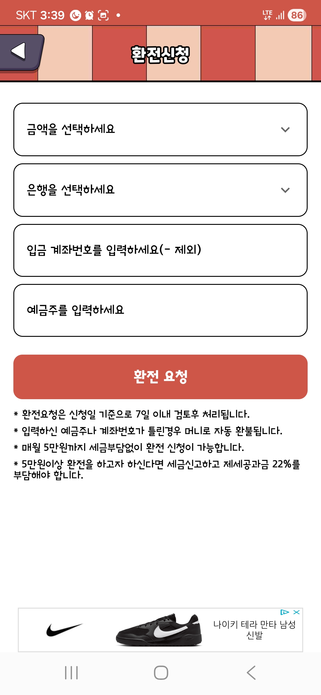 제세 공과금을 물지 않는 5만 원 이하로만 교환해 줍니다. <- 저는 이파트에서 저의 무릎을 탁! 쳤습니다. 필시 상당히 세심한 프로그램 설계자가 분명합니다. 여하튼 제 개인적으론